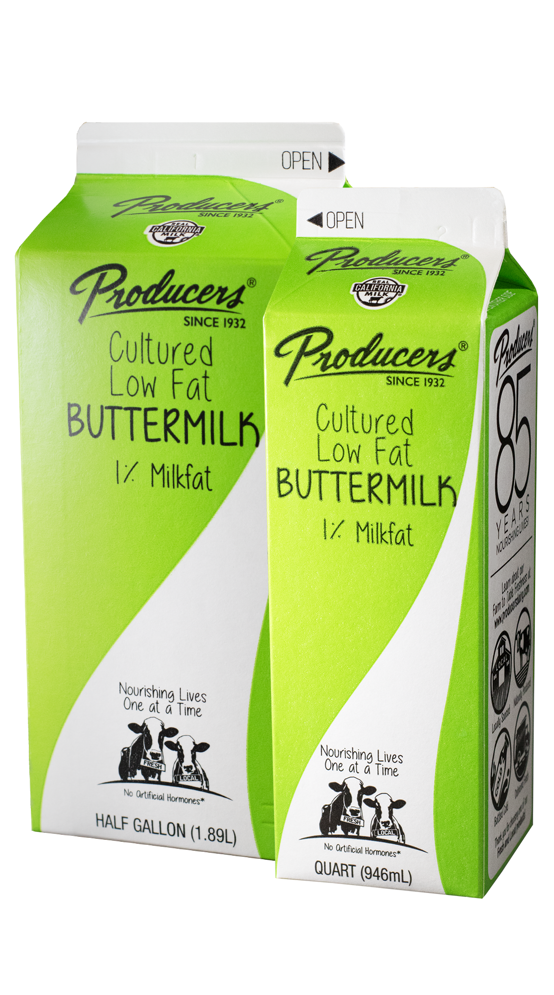 At Producers, our purpose is to nourish lives one at a time. That is why Producers Dairy products are free from the artificial hormone rBST and free from antibiotics. Our Producers Cultured Low Fat Buttermilk is still crafted in small batches with our family recipe using low fat milk. Where some cut corners, we work to produce the finest quality products. It is creamy, smooth and naturally cultured. Taste the difference.